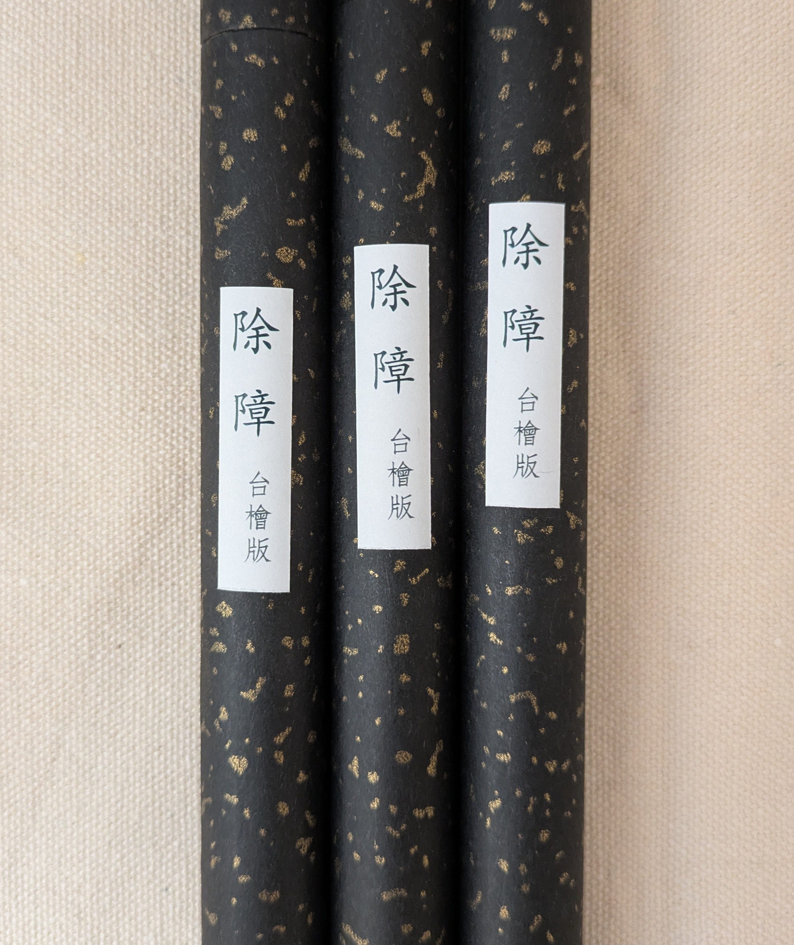 無檜木的原版除障香會持續製作,前幾天剛做好一批,還需陳放幾天較好,會先上架,但訂單下週再出貨。當然原版一樣可以用來祈福、淨化、驅邪,點燃時,不妨懷著核平的心念默禱。請相信你的念力。